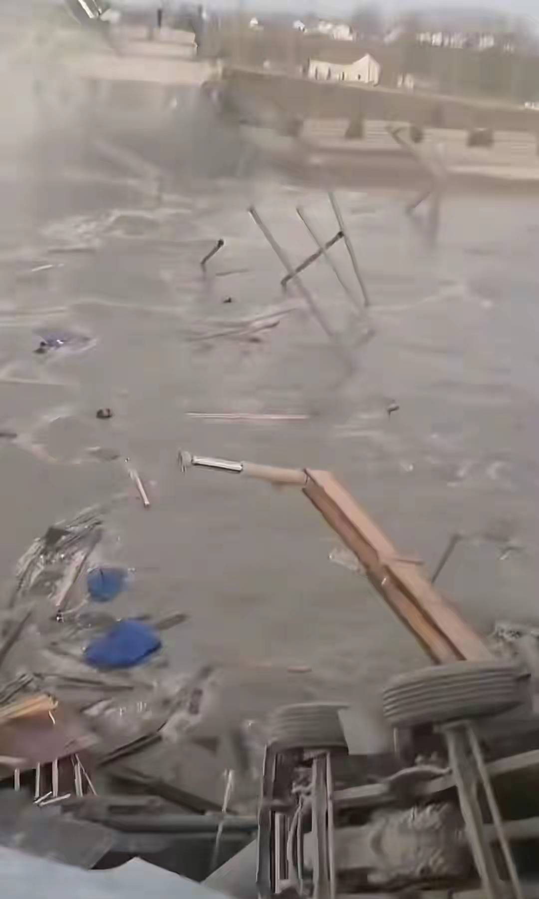 当时桥面上正忙着呢,二十多个工人各司其职,有的在绑钢筋,有的帮着吊装,还有负责现场协调的。大家都低着头干得认真,没人听到预警,也没人喊停,桥就突然往下坠。钢筋混凝土块跟下大雨似的砸进河里,当场烟尘弥漫,谁都没反应过来。说起来也让人唏嘘,中午的时候工头还拍了大家吃饭的视频,就想着赶在节前把主跨吊装完,没想到才过了几个小时,就出了这么大的悲剧。
